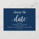 Dies ist das Rustic Navy Blue Script, Hochzeitskarte, Vertagskarte für Veranstaltungen, Jubiläumsfeier, vertagte Karte, Party Verspätungskarte. (Datum ändern) Sie können die Schriftart-Farben ändern und Ihre Daten in den entsprechenden Schriftart / Buchstaben einfügen. #TeeshaDerrick