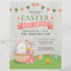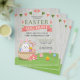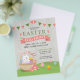 Rustikaler Easter Eizg Jagen Event Flyer mit einem Niedlichen Bunny in einem Korb, farbenfrohe Eier, Grüngras, Banner, Blume und Typografie. Passen Sie auf Ihre Wünsche an.
