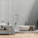 Mit senkrechten Streifen von Blumen und Sonnenblumen in warmen Gelb und abgestuftetem Blau, hat dieses Fliesendesign einen rustikalen Bauerncharme. Die sich wiederholenden botanischen Motive sorgen für ein lebendiges, handgefertigtes Ambiente, das perfekt für Küchen, Gartenräume oder gemütliche Wandakzente geeignet ist.