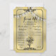Ein gealterter, gewaschener, gelber und grauer Hintergrund mit schwarzen Akzenten und Verzierungen, einschließlich Scrollwork und die Kontur eines Baumes, wird zusätzlich mit der Reihe von Gartenleuchten überlagert oben. Laden Sie Ihre Gäste mit einer maßgeschneiderten Einladung von Ihnen ein oder gehen Sie mit dem Einladungsschreiben, den wir geschrieben haben, "Kommen Sie uns bei einem Sonnenuntergang bei der Feier unserer Liebe bei." Erstellt von Holiday Hearts Designs für HHWeddings. Wenn Sie dies für eine andere Einladung ändern möchten, kontaktieren Sie uns bitte über info@holidayheartsdesigns.com und wir helfen Ihnen gerne weiter.