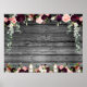 Ein extra großes 54 x 40 Zoll großes Plakatbrett mit rustikalem, Vintag wieder aufbereitetem Holzfußboden. Ein Haufen tiefbordeauxroter und rot-rosa Blumen kaskadiert inmitten von silbernen Grüngärten und romantischen Blumenbouquets in Kerzenlicht, die mit Blume aus Birnen und Blumen bestechen. Dieses Poster ist leer, damit Sie Ihren Text eingeben und für jeden Anlass nutzen können.