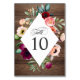 Die rustikale Hochzeitskarte im Bohobass mit ihrem rustikalen Rahmen, umgeben von Aquarellbäumen, Rose, Anemonen, Wildblumen und gemischter Vegetation, hat einen rustikalen Charme. Der kontrastierende Hintergrund ist ein reichhaltiges braunes Holzmuster. Die farbenfrohe Farbpalette ist in Rosa, Bordeaux, Pfirsich, Cremeweiß, Grün und aquamarin gehalten. Die Blumendesign- und Tischnummer-Infos befinden sich sowohl auf der Vorder- als auch auf der Rückseite dieser Karte. Um individuelle Tischnummer-Karten für alle Ihre Tabellen zu erstellen, bearbeiten Sie die Nummer auf dieser Karte und fügen Sie sie Ihrem Warenkorb hinzu. Erstellen Sie eine weitere Karte, indem Sie die Nummer mit der nächsten Tischnummer bearbeiten, und fügen Sie sie dann dem Warenkorb hinzu. Machen Sie dies für jede Tischnummer, die Sie benötigen. Dieses Farbschema eignet sich für Hochzeiten zu jeder Jahreszeit und ist besonders für Herbst-, Sommer- und Winterhochzeiten geeignet.