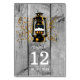 Rustikales, verwittertes, graues Stallholz und Laterne-Tischnummer für Ihre Empfang Tischdekoration. Die vollständige Sammlung mit den entsprechenden Materialien finden Sie unter: https://www.zazzle.com/collections/rustic_barn_wedding_with_barn_wood_lantern-119898431731433088