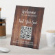 Rustikales Stallholz QR Code Hochzeitssitzplatz Podest Schild. Fügen Sie den QR-Code URL und Ihren Text zu personalisieren.