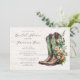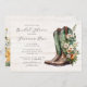 Ein bridales rustikales Brautparty mit floralen Stiefeln in Aquarelltönen vor einem weiß gekalkten Holzboden. Schmeißen Sie Ihre Lieblingsstiefel ab und bereiten Sie sich auf eine unvergessliche Ansammlung vor, die voller Lachen, Liebe und Feiern ist! Bestellen Sie Ihre Einladungen in Printmedien oder digitalen Downloads oder beides!