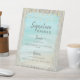 Dieses rustikale Strandhochzeitungs-Signaturzeichen mit einem Getränketisch bietet eine Strandszene mit Meereswellen, gerahmt mit Treibholz und mit Saitenlampen überragt, mit leicht zu bedienenden Vorlagen, um Ihre eigenen Heiratsgetränke aufzulisten.