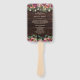 Hochzeitsfeier Handfans in einem schönen rustikalen Holz mit Saitenleuchten und bordeauxrotem Wasserfarbenblumen. Dazu gehören das Zeremoniell, die Namen der Eltern der Braut und des Bräutigams, der Beamte, des Brautparty und anderer Teilnehmer. Ideal für die Scheune oder Hochzeit auf dem Land. Kontaktieren Sie uns für Hilfe bei der Anpassung oder der Anpassung von Produkten.