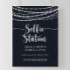Dieses rustikale Streichellichtzeichen eignet sich perfekt für eine Hochzeit oder ein Brautparty. Das Design zeichnet sich durch schöne handbemalte Saitenleuchten in dunkelblauem Hintergrund aus. Personalisieren Sie das Zeichen mit Ihrem Hochzeitshashtag.