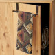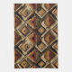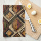 Warm geometrisch gestreiftes Küchentuch mit tribal inspirierten Diamanten, Zickzack-Mustern und texturierten vertikalen Bändern in erdigen Brauntönen, Terrakotta, Beige und Holzkohlegrau. Ein gemütliches Boho-Design, ideal für Liebhaber des Südwest-Stils, rustikale Stilfans und alle, die sich von erdigen, handgefertigten Ästhetiken angezogen fühlen.