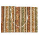 Warme geometrische Streifentasche mit Geschenkverpackung mit tribal inspirierten Diamanten, Zickzack-Mustern und texturierten vertikalen Bändern in erdigen Brauntönen, Terrakotta, Beige und Holzkohletönen. Ein gemütliches Boho-Design, ideal für Liebhaber der südwestlichen Dekoration, rustikale Stilfans und alle, die sich von erdigen, handgefertigten Ästhetiken angezogen fühlen.