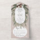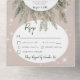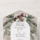 AUCH MIT EINEM QR CODE ZUM SCAN VERFÜGBAR. Das Design umfasst eine rustikale grüne Kiefer und einen pineconfarbenen Bouquet auf einem weichen beigen Hintergrund mit weißen Blume. Es wird durch ein weißes, glänzendes Overlay hervorgehoben, um den Zauber der schönen Winterferien zu veranschaulichen. Ideal für eine Weihnachts- oder Winterhochzeit. Personalisierte All-In-One-Einladungen sind eine einzigartige Kombination aus einer schön gedruckten, maßgeschneiderten Einladung und einer leicht zu abreißenden perforierten UAWG-Postkarte. Und sie sind so einfach zu bedienen! Man falte einfach, dann Siegel die Rückklappe mit den drei beiliegenden Klarkleben, und Post. Und wenn Ihre Gäste Ihre persönliche Einladung erhalten, reißen sie einfach die perforierte RSVP Karte ab und lassen sie in der Mail an Sie zurück!