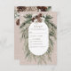 Dieses Design ist mit einem rustikalen grünen Kiefer und einem pineconfarbenen Bouquet auf einem weichen beigen Hintergrund mit weißen Blume gestaltet. Es wird durch ein weißes, glänzendes Overlay hervorgehoben, um den Zauber der schönen Winterferien zu veranschaulichen. Ideal für eine Weihnachts- oder Winterhochzeit. Diese Karte ist Teil der rustikalen Tan Pine Winter Sparkle Wedding Suite, die von Simply Farmhouse Press kreiert wurde.
