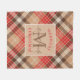 Die gemütliche Fleecedecke mit ihrem rustikalen, eleganten Beige-, Bräune-, Rot- und Brauntartan-karierten Muster und dem personalisierten "Merriest Christmas"-Originalton der Familie.