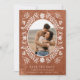 Feiern Sie Ihre Liebe mit dieser rustikalen Terrakotta Hochzeit Speichern Sie die Date Card mit einem aufwändigen Blumendesign. Ideal für eine inspirierte Hochzeit. Matching Artikel in unserem Shop Cava Party Designs.