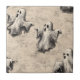 Rustikales Vintag Ghost-Keramik-Tile - Weiße nahtlose Muster mit handgezeichnet Geistern mit ausdrucksvollen Gesichtern, die über einen strukturierten, Pergament-ähnlichen Hintergrund treiben. Dieses rustikale und altertümliche Design verbindet den sprichwörtlichen Charme mit der klassischen Kunst, perfekt für Halloween- oder Gothic-inspiriert Themen.