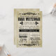 Rustikale und Vintage Western Country Saloon Thema Bar Mitzvah Einladung ist ideal für eine Bar Mitzvah Feier mit einem Outdoor-oder Sommerfest. Der Hintergrund ist in beige gehalten und die Dekoelemente sind im antiken Stil gehalten. Ideal für eine moderne, zeitgenössische oder lässige informelle Veranstaltung.