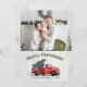 Senden Sie herzliche Wünsche in dieser Feriensaison mit einer unserer rustikalen Foto-Flachkarten. Das inspirierte Bauernhaus ist ein Vintager roter LKW mit einem Weihnachtsbaum im Hintergrund auf weißem und grauem, verwittertem Holzboden. Die Karte lautet "Frohe Weihnachten" mit Ihrem Namen und Jahr, um sich in Grün zu personalisieren. Herzlichen Glückwunsch für Ihren Urlaub in unserer Familie!