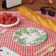 Aquarellenfarne, Pilze, Beeren und kleine Waldkreaturen - ein Baumfrosch, Ladybug und Biene - umkreisen diese hübschen Teller. Ideal für jede Jahreszeit, und das Grün schlägt den Frühling vor! Die Pilze aus dem Wald, ein beliebtes Thema, geben Interesse und Farbe. Dieses Waldtierdesign hat einen weißen Hintergrund. Originelles Kunstwerk & Design von Tuzi Williams.