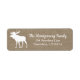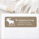 Holz-, rustikale und schicke Adressetiketten mit einer weißen Elch-Silhouette, die den Monogramm-Brief Ihrer Familie in Weiß umschließt. Der Hintergrund ist ein Einbruchdruck von Imitaten.
