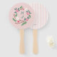 Dieses Hochzeitsprogramm-Fan verfügt über ein rustikales Wildblume-Wappen mit individualisierbarem Monogramm und handgeschriebenem Schriftart auf der Vorderseite und einen gestreiften Hintergrund mit Datum (oder anderem Text) auf der Rückseite, um den Hochzeitsgästen zusätzlichen Komfort und ein wenig Ruhe zu geben.