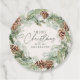 Elegante und rustikale Urlaubschargen mit einem farbenfrohen Kiefernkranz, Kiefernbäumen und üppiger Vegetation mit einem hellen cremefarbenen Hintergrund. "Frohe Weihnachten" wird in einem dunkelgrünen Skript angezeigt, in dem Ihr Name unten angezeigt wird. Auf der Rückseite des Pinienkeulenanhängers befindet sich ein dunkelgrüner Hintergrund mit Platz für eine persönliche Nachricht.