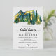Rustikales Wasserfarbgebirge Pine Brautparty Folieneinladung