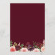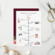Rustikale farbenfrohe Hochzeitsszenarien, Timeline-Programm. Auf der Karte finden Sie Kirche, Kamera, Glasflasche, Teller, Musiknoten, Kuchen, Bouquet und Retro-Automobil. Die Rückseite der Karte weist einen farbenfrohen Bordeaux- und Blumenrand mit blühenden Blumen- und Blattfarben auf, der mit der bordeauxroten Hintergrundfarbe übereinstimmt. Entworfen, um mit unserer Botanischen Flora Kollektion Burgundy Blush zu koordinieren.
