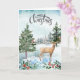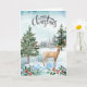 Eine friedliche Winterlandschaft mit Hirschen und Kardinälen. Außerhalb der Karte liest: Frohe Weihnachten Inside der Karte liest: wünschen Sie ein frohes Weihnachten und ein glückliches neues Jahr (kann angepasst werden)