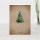 Rustikale Weihnachtsbaumschneeflocken Weihnachtskarte. Rustikal beige Hintergrund und Aquarell farbenfroher Weihnachtsbaum. Sie können Ihre eigene Nachricht in die Karte einfügen oder sie löschen.