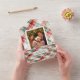 Senden Sie Ihren individuellen Urlaub Gruß mit diesem schönen Design mit Portrait-Seitenfoto-Vorlage auf einem warmen, rustikalen roten, grünen und egshell diagonalen Aquarell karierten Hintergrund. Die Panels verfügen über zusätzliche Vorlagen für Foto und Text.