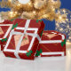 Feiern Sie die festliche Jahreszeit mit diesem bezaubernden Weihnachtspapier mit rustikalen Geschenkboxen, die auf weißen Plätzen gerahmt und mit heiligen Blätter und roten Beeren verziert sind. Set vor tiefrotem Hintergrund mit goldgelben geometrischen Linien, dieses sich wiederholende Muster fügt eine warme, gemütliche und Vintage Touch zu Ihrem Urlaub Geschenkverpackung. Ideal für Weihnachtsgeschenke, Gastgeschenke und festliche Dekoration!