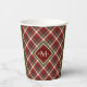 Rustikales Weihnachtsgrün Kariert Simple Monogram Pappbecher