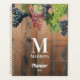 Rustikales Weinbauholz und Traubenmonogramm Planer