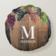 Rustikales Weinbauholz und Traubenmonogramm Rundes Kissen