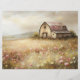Dieses bezaubernde Gemälde zeigt eine rustikale, weiße Scheune, eingebettet in ein Feld lebendiger Wildblumen, das eine friedliche Landschaft hervorruft. Die sanften Pinselstriche und warmen Farbtöne schaffen eine nostalgische Landschaft im Bauernstil, die sich perfekt für die ländliche und rustikale Dekoration eignet.