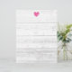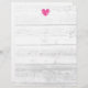 Rustikale Weißholzkorn Linie Hochzeitsletterhead. Country chic Schreibpapier für Menü, Notizen, Briefe, Anweisungen, Einladungen, Ankündigungen, Aktivitäten, Routen etc. Fuchsienrosa Herz mit hellgrauem Holzhintergrund. Teil des wunderschönen Set zum Thema Sammlung für trendige Braut und Bräutigam Heiraten. Romantisches Shabby Chic. Ideal für Farm im Freien oder Sommerheirat. Vintager Stil stationär.