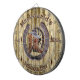 Ein Scheunentür-Cowboysaal-Bar des rustikalen Westerns hölzernes, mit den Cowboystiefeln eines glücklichen Pferdeschuhes, des Lastwagenrades und perfekt, damit die Viehzüchter und die Cowboys ihren Namen hinzufügen.