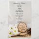 Das natürliche, rustikale "White Daisies Woodland Wedding Menu" mit den Details der Mahlzeit, die Sie an Ihrem lässigen und dennoch eleganten Brautparty Mittagessen, Post Hochzeitsbrunch oder Ehe Empfang Dinner durch Hinzufügen des Salats oder der ersten Gang, Vorspeise oder zweite Gang und Dessert oder dritten Gang. Dieses bezaubernde Hochzeitsmenü im Freien oder im Wald inspiriert mit einem Naturfoto eines Straußes aus weißer, blühender Blume, Holzschnitt mit dem verbrannten Wort LIEBE, einem braunen Kiefernkegel und einem weißen Brautschleier mit einem Kratzer und weißem Satin-Hintergrund.