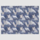 Ein dunkelblauer Hintergrund mit einer schönen Bergszene in einem Muster mit schneebedeckten Kiefern, weißen Füchsen und fliegenden schneebedeckten Eule. Dieses Weihnachtspapier ist perfekt für Ihre Feiertage und Weihnachtsgeschenke in dieser Saison.