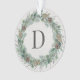 Rustikales Wintergrün Monogram Wreath White Wood Ornament