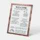 Personalisiertes rustikales Begrüßungsschild für eine Skihütte, ein Mietobjekt, Airbnb, Ferienhaus oder B&B. Mit einem Holzputz-Hintergrund (Bild gedruckt) und einem Logo-Design mit Bergen und Schnee, die Sie ersetzen oder verlassen, wie es mit dem etablierten Jahr, neben dem Namen des Ortes, Adresse, Kontaktnummer und E-Mail. Bearbeiten Sie den Text, um jeden beliebigen Text für die Hausregeln, WLAN, Karo-out und zusätzliche Informationen für Ihre Gäste hinzuzufügen.