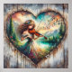 Dieses Poster zeigt eine rustikale Holzszene, in der ein Mädchen in einem ausgeschnittenen Herzen Geige spielt. Ideal für Musikliebhaber und Leute, die das Land Liebe haben.