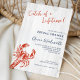 Diese rustikale Braudusche an der Küste bietet einen hellen rustikalen Holzhintergrund mit roter, handgezeichneter Hummer und das clevere Sprichwort "Catch of a Lifetime" in lässiger Handschrift.