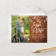 Modernes Pinselskript, rustikales Holz, Saitenleuchten mit Mason Jars, Save the Date Verlobung Couple Foto Postcard