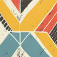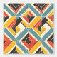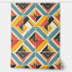 Dieses Kunstwerk präsentiert ein dynamisches und strukturiertes Muster Zickzack und dreieckiger Formen, die in einem fetten Mosaik angeordnet sind. Das Design zeichnet sich durch eine lebendige und dennoch erdige Farbpalette aus aquamarinem, senfgelbem, rotem und schwarzem Set mit cremefarbenem Hintergrund aus. Das Muster ist von subtilen Kratzern und groben Texturen bedrängt, was ihm ein rustikales, abgenutztes Aussehen verleiht. Die geometrische Anordnung schafft ein Gefühl von Bewegung und Tiefe, während die kühnen Linien und kontrastierenden Farben ein Gefühl von Energie und Vitalität hervorrufen, das an Vintage Textilien und handgefertigte Designs erinnert.