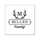 Rustikale Briefmarke mit Serif-Monogramm zwischen Antlers und Familienname im selben Schriftart auf einem stilvollen Abzeichen mit benutzerdefinierten Skripten "Familie" im dekorativen Schriftart