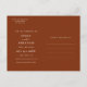 Diese elegante Save the Date Postkarte bietet eine Fotoplatte im Vordergrund und moderne Script- und Serif-Schriftart für Ihre Veranstaltungsdetails. Fügen Sie Ihre Rücksendeadresse in die links Ecke oben hinzu und fügen Sie rechts hinten Ihre "Lieferadresse" hinzu. Personalisieren Sie diese rustikale Terracotta Save the Date Postcard mit Ihren Hochzeitsdetails und mehr!