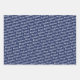 Das rustikale, moderne Set für Feriengeschenke umfasst drei aufeinander abgestimmte Packpapierblätter: klassisch marineblau, waldgrün und weiß sehen kariertes Muster, marineblau mit weißem Schriftzeichen "Frohe Weihnachten", Waldgrün mit kleinen weißen Kiefernmustern.