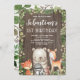 Whimsical Geburtstags-Einladung mit Darstellung von rustikalen Grüntönen, Blattpflanzen und bezaubernden Waldtieren: Fuchs, Hirsche, Bären, Eichhörnchen und Marderbarsch
