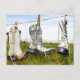 Schöne Postkarte von Cowboystiefeln, die an den Prärien hängen.